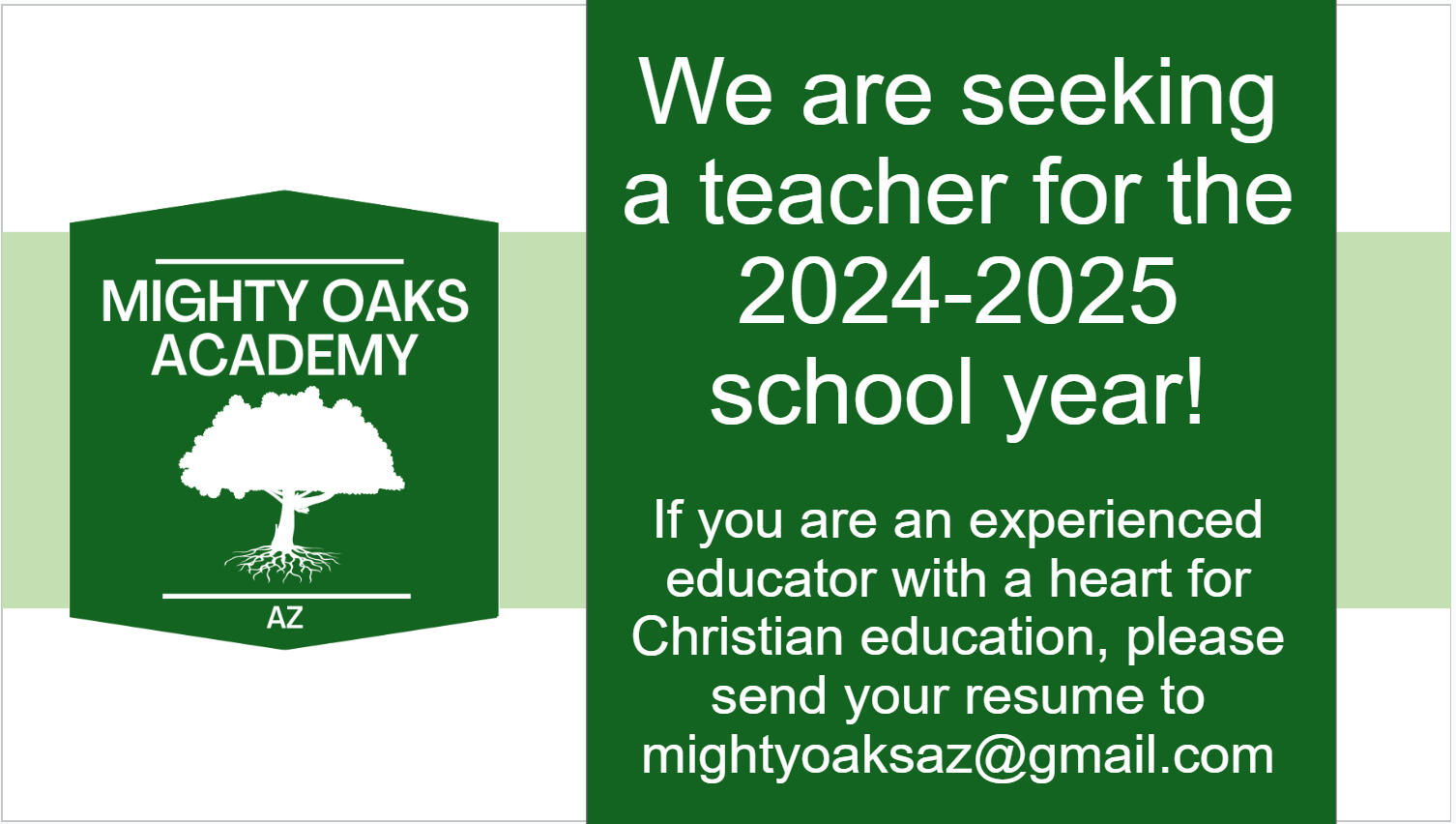 We are Mighty Oaks Academy, a non-denominational Christian school started by parents for families seeking alternative education that aligns with their values.
