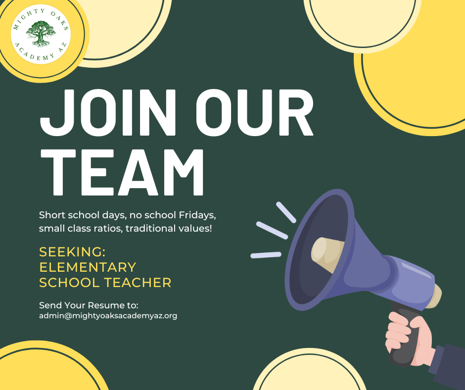 In pursuing our mission, Mighty Oaks will minister to our community through providing quality biblical education. As we keep God at the center, our team will bear fruit from the inside out by serving first, leading second, pursuing excellence, demonstrating unity, and supporting the formation of strong families.